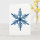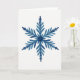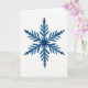 This card has a snowflake 🎄 on it. The snowflake is dark blue and light blue, and it's in the middle of the card. The snowflake doesn't have sharp edges; it looks like a leaf with six arms. There are white dots on the arms, like tiny frost or stars. The background is plain white. The snowflake is special because it's made with watercolor, making it look like it's glowing. It's perfect for sending holiday cheer 🎅🏼🎁.