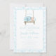 Blue elegant watercolor baby boy on swing with seamless floral pattern baby shower invitation.