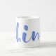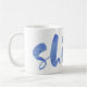 This stylish Hanukkah mug says "shine" in trendy blue watercolor script.