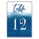 The blue watercolor wave design on the table card with "table" in a script font is perfect for a beach wedding.