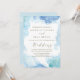This blue watercolor wedding invitation card is perfect for a modern wedding. The design features soft sky blue and teal watercolor.