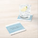 Trendy and stylish Watercolor Wedding Paper Coasters with a rectangle brushed watercolor look blue background. These elegant and modern coasters are easy to customize with your wedding details. For more customization options, click on the Customize It button.
