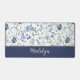 This monogram name boho wildflower pattern would look beautiful in your home, accessorizing your living space to new a new heightened look. The watercolor wildflower pattern features delicate dusty blue and navy flowers and sage green leaves.