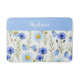 Blue Watercolor Wildflower Monogram Name Bath Mat