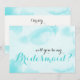 For the bride to be who is whimsical! A creative and fun way to ask your very special girls to be a part of your bride tribe (and stand by your side on your big day!) Featuring watercolor wash background in blue. Reads "Will you be my Bridesmaid?" on the front with "It would mean so much if you said Yes!" on the back. Customize each name and wedding date to make your request one of a kind.