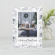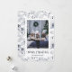Watercolor winter foliage photo Christmas cards featuring winter botanicals in blue and grey colours. Easily personalize these watercolor photo Christmas cards with your photo and family name.