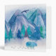 Whimsical Watercolor Winter Mountain Landscape Art
