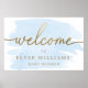 This welcome sign features a timeless watercolour design with a faux gold foil welcome heading. the sign can be customised to suit any event.
