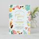 Blue | Watermelon Pineapple Tropical Pool Party Foil Invitation. Celebrate in style with these fun invites. This design features a border of summer elements, "pool party" in modern script lettering, and your party information in trendy typography. The border consists of a pineapple, camera, sun hat, shades, tropical leaves, flowers, ice lollies, lemonade, flip flops, beach balls, lemons, doughnuts, watermelon, ice cream, and more! Click on "Personalize this template" to change the wording. If you want to change fonts, sizes, colours, or placement, scroll down to "Click to customize further" and use our design tool! Visit our store for more designs!