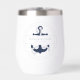 Les pièces de cette élégante suite de mariage présentent un style nautique classique et un style épuré et minimaliste. Des vagues stylistiques dans les teintes allant de l'aqua au bleu marine et une illustration d'ancrage et de corde apportent des accents uniques. La fine tuyauterie bleu marine donne à ce vin thermo tumbler design un look moderne saisissant. Idéal pour les mariages de club nautique, de bateau, de plage ou d'été. Recherchez ID836 pour voir cette suite complète et d'autres avec des accents d'éléments marins alternatifs.
