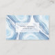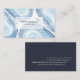 Elegant watercolor business cards feature geode or agate slice illustrations in pale blue ocean wave shades on a matching tone-on-tone background. Cards reverse to solid navy blue with white lettering, with fields for your full contact information. A chic choice for salons, spas, stylists, decorators, graphic designers or any occupation.