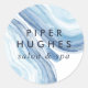 Chic round stickers are perfect for your business materials, branding, packages and correspondence. Design features watercolor geode agate slice illustrations in ethereal ocean blue, with two custom text fields overlaid in deep navy blue block and italic lettering.