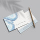 Chic customer gift certificate displays a single line of custom text (shown with "a gift for you") on a crisp white background accented with watercolor geode agate slice illustrations in ethereal ocean blues. Add your desired gift certificate wording and business contact information on the reverse side. A modern and elegant choice for spas, boutiques, salons, makeup artists, hair stylists or any business.