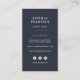 Chic watercolor business cards in a unique vertical format feature your name or company name in the lower left corner, with two geode agate slice illustrations in oceanic blue watercolor. Add your full contact information to the back in white on deep navy blue. Includes three social media icons and a template field for your username.