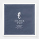 The pieces of this elegant wedding suite feature classic nautical styling with a clean, minimalist look. Stylistic waves in shades from aqua to navy blue and a seahorse illustration provide unique accents. On this coordinating paper napkin, the small seahorse in white on a navy blue background is simple but eye-catching. Add your 'Thank You' message, names and wedding date using the provided template. Perfect for yacht club, boat, beachside or summer destination weddings. Search ID836 to see this complete suite and others with alternate marine element accents.
