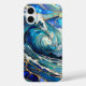 Bold, dynamic, and visually striking — this phone case features a powerful ocean wave design in a luminous stained-glass–inspired style.