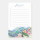 Add whimsical marine theme to liven up your everyday with our colourful Blue Waves & Happy Turtle Customizable Post-It Notes featuring playful green turtle frolicking in a serene sea among ocean flora. The design is captured in shades of blue, teal, yellow, gold, pink and purple. All text can be updated to create personalized stationary.
