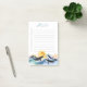 Add whimsical marine theme to liven up your everyday with our colourful Blue Waves & Happy Whales Customizable Post-It Notes featuring three playful whales frolicking in a serene sea under a golden sun. The design is captured in shades of blue, teal, yellow, gold, pink and purple. All text can be updated to create personalized stationary.