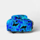 A backpack with blues and black waved together