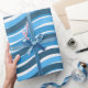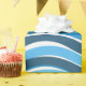Shades of blue and white wavy lines pattern fun retro style custom wrapping paper.