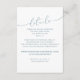 Share the details of your big day with elegance and style using this minimalist wedding details card. Featuring a chic blue colour palette, calligraphy script, and stylish typography, this card is perfect for adding a personal touch to your reception. The ampersand monogram initials add a sophisticated flair, while the simple design keeps it classic and timeless. Ideal for directing guests to your wedding website, this card adds an elegant and traditional element to your celebration.