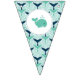 Banner with "baby shower" wordings, blue whale design and nautical pattern background.