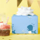 Blue whale baby shower wrapping paper. Light blue whale print with customizable text like: it's a boy! Cute nautical theme animal cartoon. Personalized gift wrap rolls.
