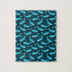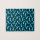 This cute jigsaw puzzle includes an original, repeating whale pattern. It's made in pretty shades of teal on a navy blue background. Little nautilus shells, anchors, coral, lobsters, ship wheels, and starfish dot the spaces between swimming blue whales. Choose your own puzzle size and piece count.