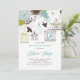 Customizable invitation featuring blue and chartreuse birdcages, lovebirds and flowers. Other colours and similar items are available in my store.