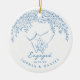 Blue Whimsical Hands Our First Christmas Engaged Ceramic Ornament