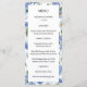 Ajoutez une touche d'élégance et de charme à votre journée spéciale avec ce menu de mariage Jardin Bleu Whimsical Watercolor. Doté de fleurs d'aquarelle douces et rêvées dans des tons bleus sereins, ce design saisit magnifiquement l'essence d'un jardin romantique. Personnalisable pour refléter le menu de votre événement, cet article est un must pour les couples qui veulent créer une expérience culinaire mémorable.