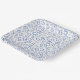 This cool numeric design is a blue and white random number pattern with a blue milestone number 65 repeated in varied sizes and angles over a white background.