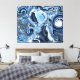 Blue, White and Gold Swirls Fluid Art Faux Canvas Print.