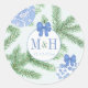 Blue White Baubles Fir Tree Holidays Wedding Classic Round Sticker