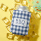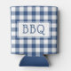 Keep your drinks cool in style at a barbecue with can coolers featuring a classic blue and white buffalo check plaid with the letters BBQ in a white rectangle on each side. You can change the text to a monogram or short name if you like in the sidebar.