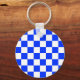 Blue White Chequered Check Pattern Keychain