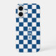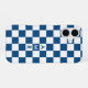 Cool iPhone case features a bold blue and white chequered pattern with a customizable monogram. Add (or delete) 3 initials or numbers in the sidebar to personalize it. The geometric chequerboard pattern is made of rows of alternating white and blue squares. Other case styles and models also available in the sidebar.