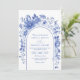 Blue White Chinoiserie Floral QR Code Wedding Invitation