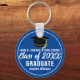 This modern blue and white custom Class of 2026 graduate keychain features your high school or college name. Customize with your graduating student name under the chic handwritten script and black grad cap for a great personalized graduation key chain gift.