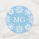 Winter baptism table confetti for a boy with two photos of your baby boy, his initials, blue crosses and snowflakes. Boy baptism table confetti for a blue winter baptism.