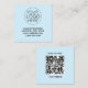 Square business card design features your business logo and custom QR code on the back. Customize the text with your business information, such as the business name, address, phone number, or website.