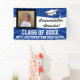 Royal Blue and white high school or college colours. Big giant yard sign or indoor/outdoor banner, Congratulations to the graduate of the class of (your year). Customize this personalized yard banner sign with your graduate's photo, name, year and school or other custom text. Personalized outdoor or indoor graduation party sign banner with your graduate's year, name, high school. Spectacular way to congratulate the graduate and welcome family and guests to your graduation party .