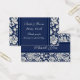 Wedding favour tag in elegant dark navy blue and cream off white floral damask design, also available in many matching wedding products.
