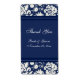 Elegant Wedding thank you labels in stylish dark navy blue and cream off white with classic floral damask pattern, the perfect addition to your wedding, available in a wide selection of matching wedding products. Perfect for wedding favours or wedding wine bottle labels.
