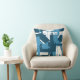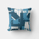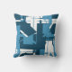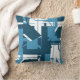 Blue White Dark Turquose Geometric Abstract Motif Throw Pillow