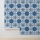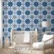 Blue & White Delft Floral Tile Pattern Wallpaper
