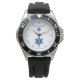 A monogram blue and white watch, with a medical EMT symbol and a spot for your gift recipient's name and last name initial monogram. A great gift for anyone who is a EMT / PARAMEDIC or even a firefighter or volunteer, or any proud member of the medical community. This watch contains a white face along with a blue circle framing the last name monogram. A removable Roman numeral time face in included in this piece.