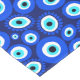Colourful tablecloth printed with a pattern of evil eyes, on a gorgeous deep blue background. Ancient Greeks believed the bearer or wearer of this symbol would be protected from the evil gaze of others. Nowadays, the eye is seen as a lucky symbol or talisman.