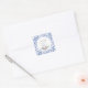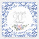 Blue and white, floral leaf, seamless, repeating pattern in background, a white, circle shape with rings layer, and templates created for a special birthday. A blue and blush pink floral arrangement in underneath.