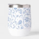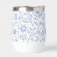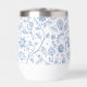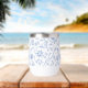 Add a sense of style to your day with this playful, elegant, simple custom name stemless wine tumbler. Light dusty French country, whimsical blue boho block print flower and leaf pattern overlays a white background. This double-walled insulated tumbler helps retain your drinks soothingly hot or refreshingly cold. Makes a chic and modern statement whenever you use it. Makes a great gift as well!